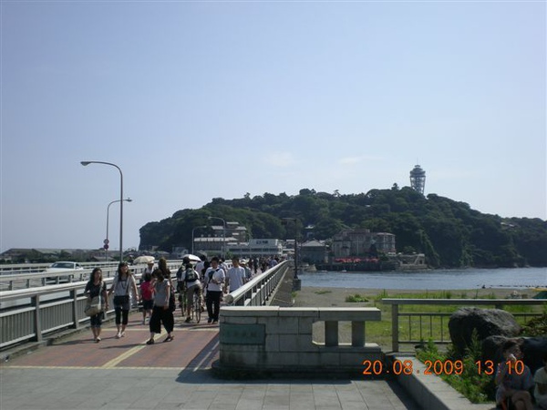 江之島,位在湘南海岸外,是個小小的島,有一座跨海大橋(倂天橋)跟海岸相連。