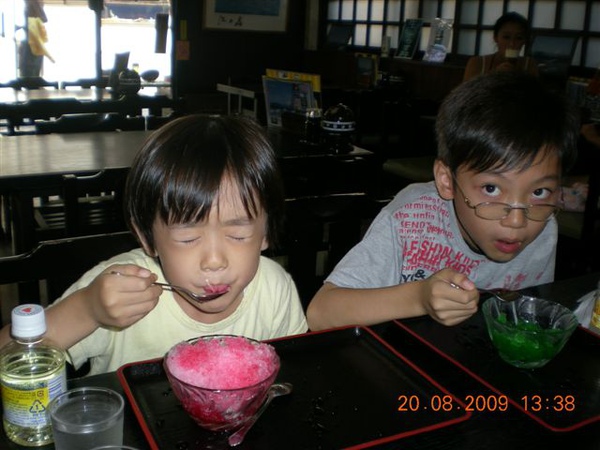 天氣實在是很熱啊,光走過橋,差不多一公里多的距離,就已經熱到讓大家都受不了,先來碗冰再說