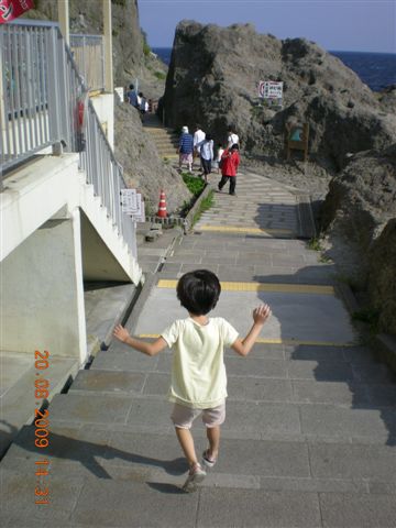 海岸旁有個石洞(岩屋),有開放收費參觀,以前來的時候有進去參觀過,所以這次就不去了,專心帶孩子們去走海^^