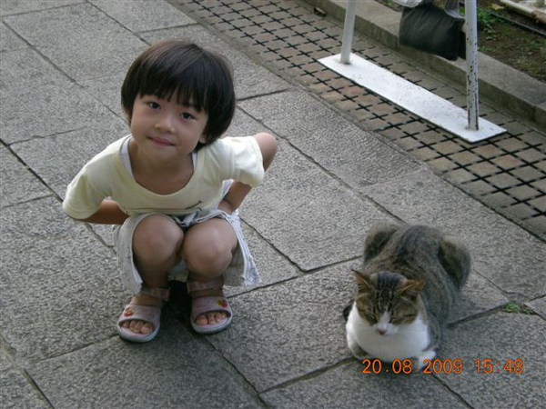 走回到山下,跟江之島的特產拍照:肥貓!